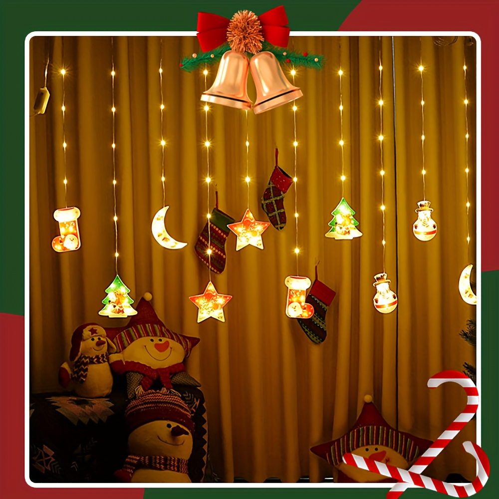 Create a warm festive atmosphere with these 118.11-inch LED Christmas string lights, featuring 10 hanging ornaments including Christmas trees, Santa, stockings, snowmen, moons, stars, and more. The set offers 8 lighting modes such as steady, flash, and fade, perfect for decorating Christmas trees, fireplaces, windows, doors, bedrooms, offices, or shop displays.