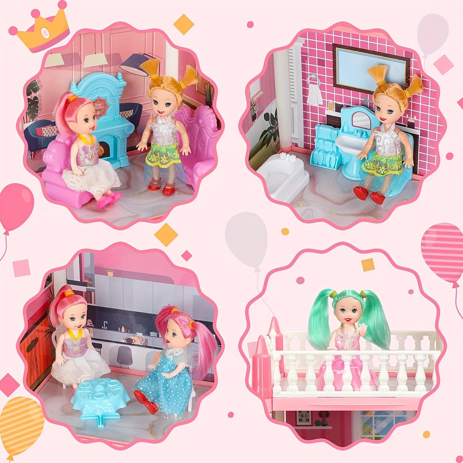 1 Dollhouse Set (4 floors, 11 rooms)